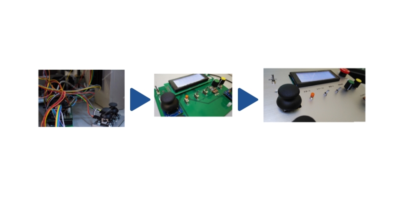 例)プロトタイプのジョイスティック操作装置を基板化、ケースに入れて現場で使用。